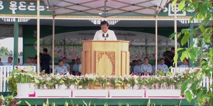 Following his speech, the Acting President SSPC Chairman Senior General Min Aung Hlaing led the planting of a star flower sapling in the designated area. After that, the attendees, including Commission Vice chairman Vice Senior General Soe Win, the Commission's Executive Chief U Aung Lin Dwe, Commission Secretary and Joint Executive Chief General Ye Win Oo, Union-level dignitaries, Union Ministers, honored guests, students and civil servants from various ministries, all participated in planting the saplings.