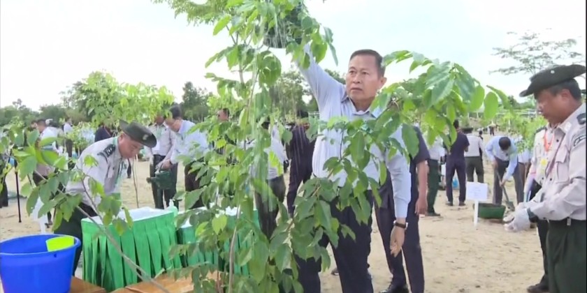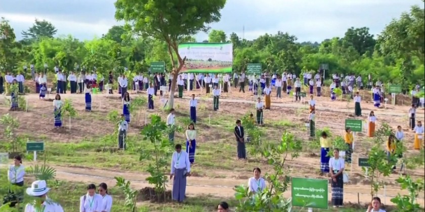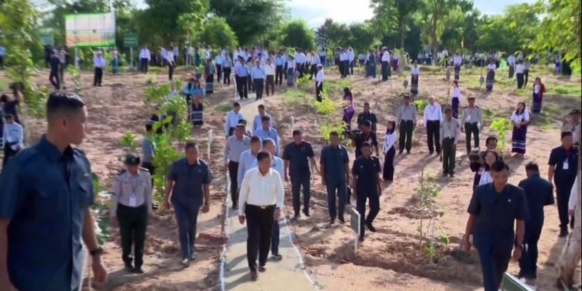 The Acting President and Chairman of the State Security and Peace Commission Senior General Min Aung Hlaing, attended the event and led the planting of a star flower sapling. In his speech, the Acting President SSPC Chairman Senior General Min Aung Hlaing stated that in line with the national policy of "Let's preserve the environment for the prosperity of the state," the government is leading tree-planting ceremonies with the participation of the public.