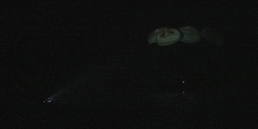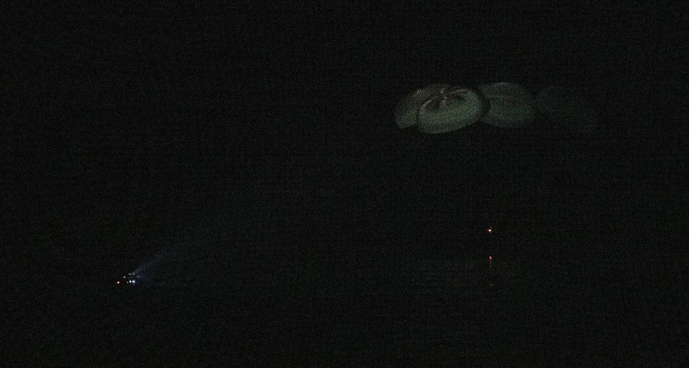 A capsule carrying the four astronauts splashed down off the southern US state of Florida on Tuesday. Their capsule streaked across the US in the predawn darkness and splashed into the Gulf of Mexico. They moved into the space station last August. Their replacements arrived last week in their own SpaceX capsule.
