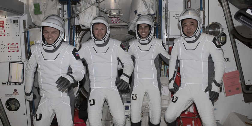 Four astronauts from four countries caught a lift back to Earth with SpaceX on Tuesday to end a half-year mission at the International Space Station.