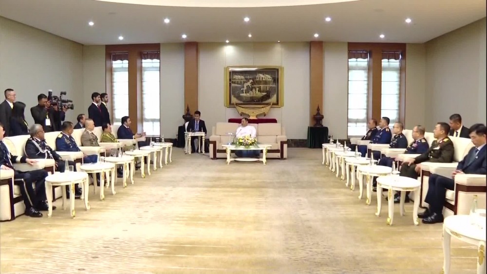 Prior to the opening ceremony, INTERPOL Chairman and delegation leaders paid a courtesy call to the honorary guest member of State Administration Council Union Minister for Home Affairs Lt-Gen. Yar Pyae at Room No (2004) of MICC-1. The opening ceremony of the conference was held from 8:20 AM to 9:35 AM, beginning with the entrance of the flag-bearing team, followed by the performances showcasing Myanmar cultural dances.