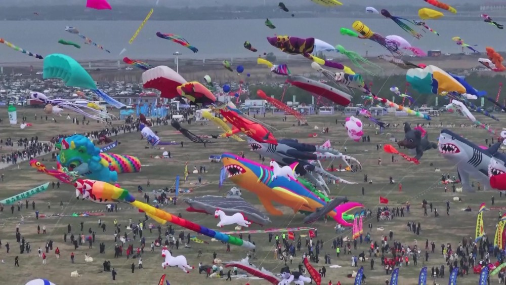 This year’s festival has brought together competitors from 57 countries and regions, with more than 2,300 kites in a wide range of creative designs filling the sky in a vivid spectacle of color and craftsmanship. The festival features 56 events, including the 22nd World Kite Championships, as well as cultural and tourism activities, sporting events, and business exchanges.
