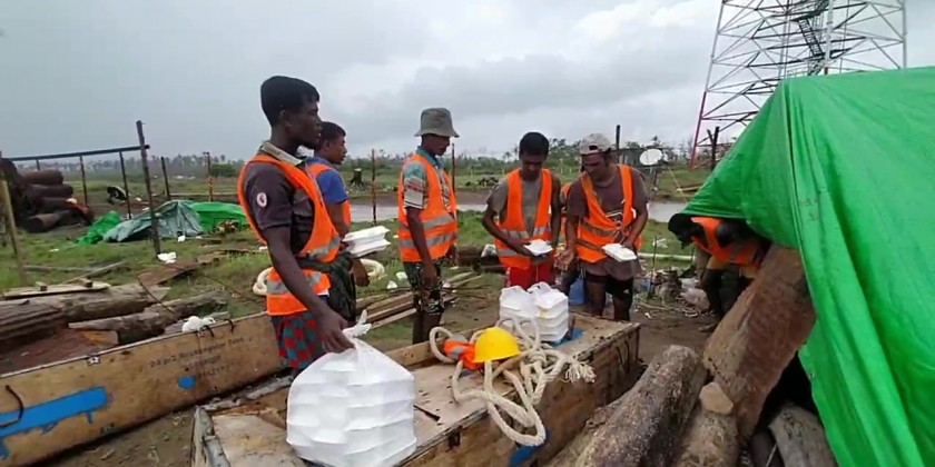 In Sittwe Township area, in the morning of the 16th of July, donation of 6,000 boxes of rice and dried fish and potato curry and 500 boxes of biryani were made in places including the Fire Services Department, the Sittwe Station, the KanZauk Station, the Forest Department, monasteries, the Nursing Training School, the People’s Hospital, governmental offices and AnaukSanPya Ward as well as for members of the Myanmar Police Force and volunteering groups who are making efforts for rehabilitation works in the extremely severe cyclonic storm-affected areas.