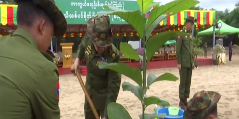 In the ceremony, 1,764 teaks, 882 Manjansha, 882 gumgikos, totaling 3,528 saplings were planted. Families of the Office of Commander-in-Chief (Army, Navy and Air) have organized tree planting ceremonies for 39 times from 2011 to 2023 and a total of over 194,000 of teak, perennial and shady trees were planted. Similarly, the monsoon tree planting ceremonies were held at the respective military commands and Commanders and officials planted saplings. It is learnt that as a whole, Tatmadaw planted a total of 175,674 saplings on Thursday.