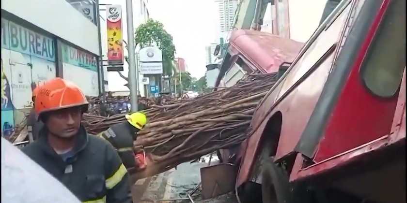 Five persons were killed and 17 others injured when a tree fell onto a bus near the Liberty Roundabout in Kollupitiya of Sri Lanka on Saturday. A bus met with accident when a massive tree on the side of the road fell on the bus while it stopped under the tree to board a large number of passengers.