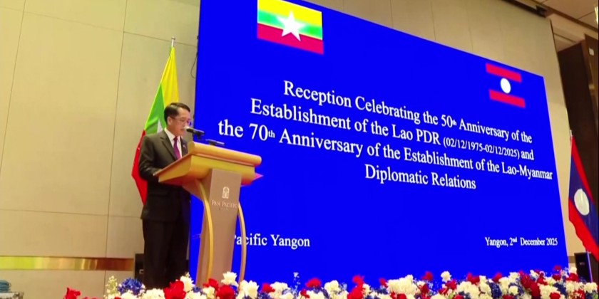 A reception to mark the 50th Anniversary of the establishment of the Lao People's Democratic Republic and the 70th Anniversary of the establishment of diplomatic relations between Myanmar and Laos was held at Pan Pacific Hotel in Yangon in the evening on December 2.