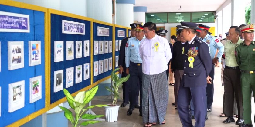 Then, the Chief Minister, Senior Tatmadaw Officers, Chief justice of region high court, region Minister for security and border affairs and the Chief of Magway Region police force awarded the honorary medal and cash of honor to the members of police who sacrifice their lives and limbs in battle against the terrorist groups members PDFs.Afterward, the Video clip commemorating Myanmar Police Force Day was screened, the documentary group photo was taken and the Chief Minister and party viewed the exhibition booths displayed in commemorating 59th Anniversary Myanmar Police Force Day.