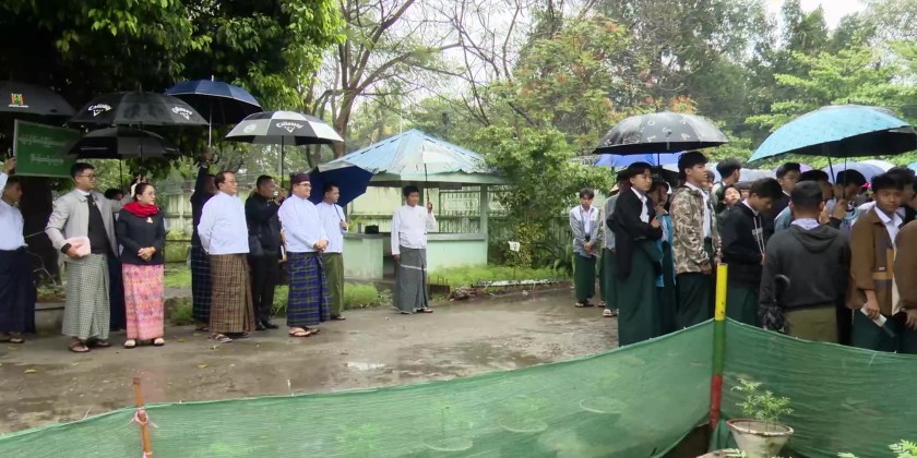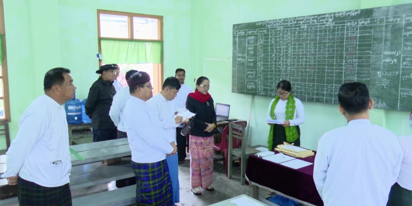 Subsequently, at the examination supervisor's office, he met with the teachers on duty. They reported on the examination procedures being followed at the center, which includes students from the aforementioned school, Basic Education Middle School No.3 (sub High school), and private high schools Pyinnyar Bank , K.S.S School, and IPSS-2 Private High School. Out of a registered total of 520 students, 507 were sitting for the exam.