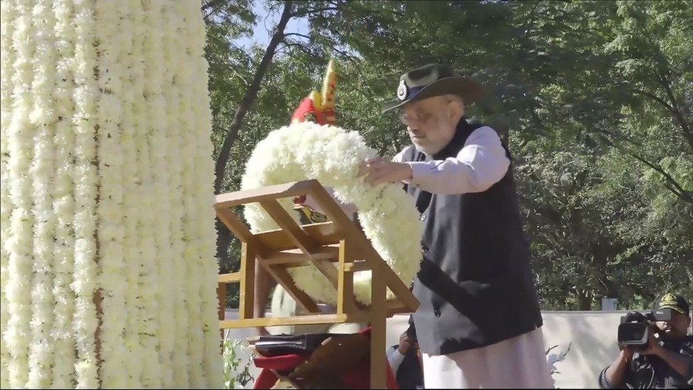India's Home Minister Amit Shah unveiled the statue of the 1st Home Minister of India Sardar Vallabhbhai Patel in Jodhpur on Sunday on the occasion of 60th Raising Day celebrations of Border Security Force (BSF).