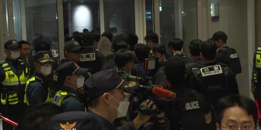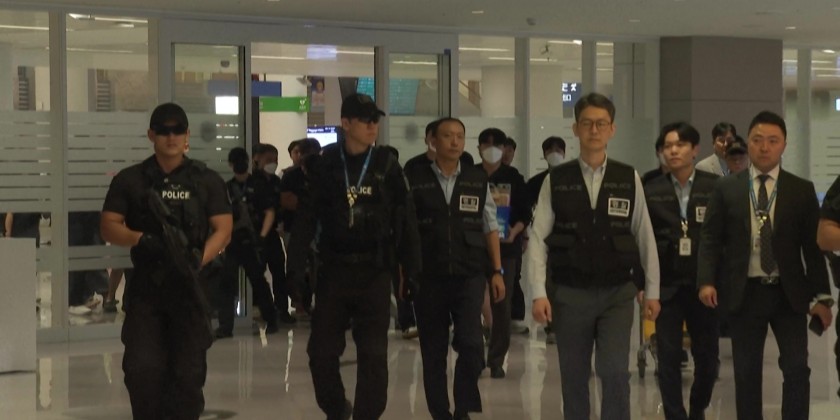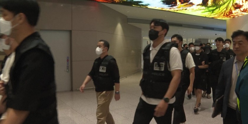 Sixty-four South Koreans detained in Cambodia for alleged involvement in cyberscam operations have arrived at Incheon International Airport. Most were reportedly restrained during transit. The South Korean government confirmed that Cambodian authorities are continuing their crackdown on scam crimes and emphasized plans to strengthen cooperation.
