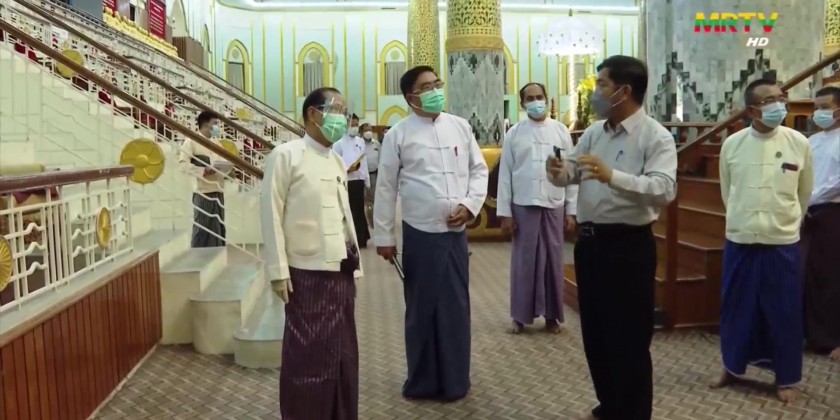 In the afternoon, the union minister inspected the major renovation works of Maha Pasana Cave at Thirimingalar Kabaaye hill, Mayangone Township and gave necessary instructions.