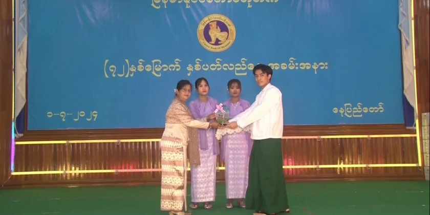 The ceremonies of observaing 72nd Anniversary of the Central Bank of Myanmar, awarding outstanding personnel and offrings of personnel who passed the matriculation examination for 2023-2024 Academic Year and providing educational assistance for 2024-2025 Academic Year was held at the Zabuthiri Hall of the Central Bank of Myanmar in Nay Pyi Taw at 10 AM on Monday.