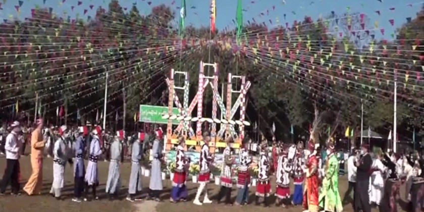 This event began with reading out the message sent by Chairman of the State Administration Council Prime Minister Senior General Min Aung Hlaing and a speech by Kachin State Chief Minister U Khet Htein Nan. It continued with the SAC members, union ministers and many other high ranking officials taking part in the Manaw Dance performance.
