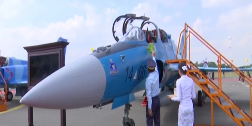Commander-in-Chief (Air) Gen. Tun Aung expressed words of thanks before the announcement of the commissioning the aircrafts. The miniature aircrafts were also presented to the Senior General. It was followed by the flying demonstration of aircrafts and helicopters. In honour of the Diamond Jubilee of Air Force 75 birds were released, and sprinkled the scented water to the newly aircrafts.