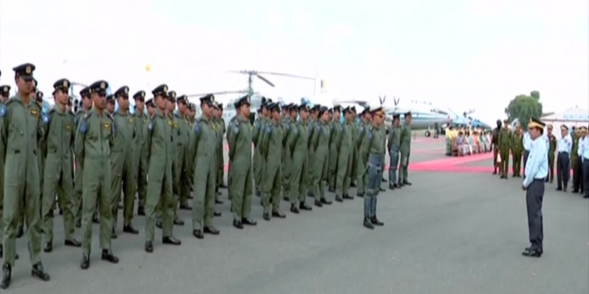 The ceremony commenced with the flying demonstration of 15 aircrafts which are manufactured by the Air Force. In his speech, the Senior General said the Air Force has been serving the state’s duties in successive eras till the Diamond Jubilee period. He urged to relay the good traditions of Air Force to the new generations, and continue to participate in nation building endeavours and national defence duty.