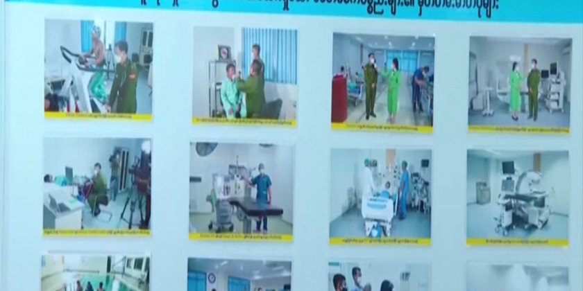 The Senior General urged all members of the Military Corps to continue providing threatment to the Tatmadawmen and families. The Director of the Medical Services later explained the brief history of the Medical Corps, followed by the screening of the Documentary Video. The Senior General later greeted the retired officers of the Medical Corps, and viewed the commemorative booths.