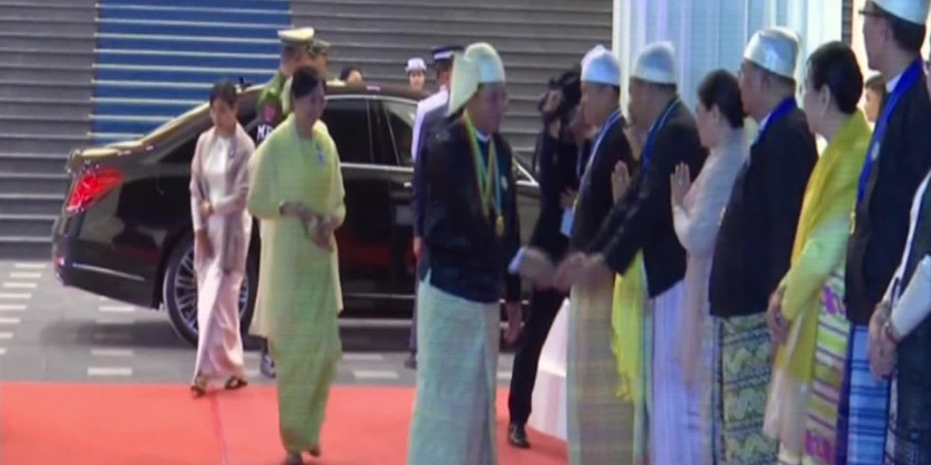 Afterwards, SAC Chairman Prime Minister Senior General Min Aung Hlaing and wife Daw Kyu Kyu Hla arrived at the lawn of the SAC Chairman’s Office, and cordially greeted the chairpersons, representatives of political parties, diplomats and invited guests. Later, the Prime Minister and wife took at the designated places together with those attending the ceremony.