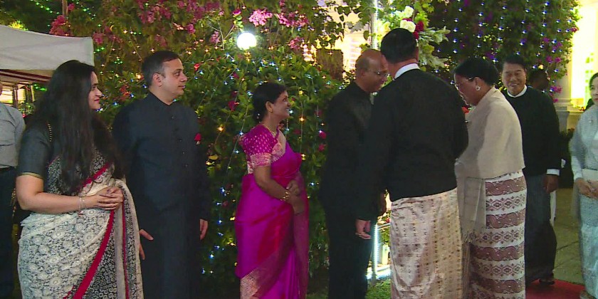 The invited guests were welcomed by Indian Ambassador to Myanmar Mr.Vinay Kumar, Military Attaché and officials. Then, the ceremony was inaugurated with the anthems of the Republic of the Union of Myanmar and the Republic of India. This was followed by a welcoming speech of Indian Ambassador to Myanmar.During the dinner, the Indian traditional dance troupes performed with Indian traditional dances.