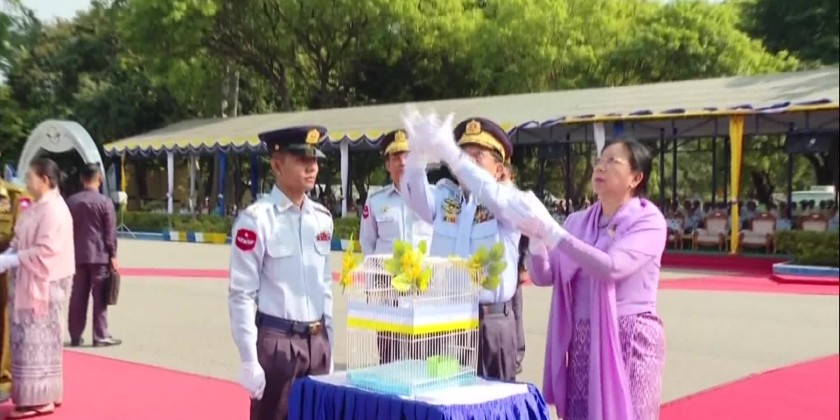 The Senior General and entourage released 77 birds, in commemoration of the 77th anniversary of the Tatmadaw (Air) and sprayed scented water on the new aircrafts and helicopters. They then proceeded to tour the newly commissioned aircrafts and helicopters. The reconnaissance aircrafts MTX-1A and MTX-1B, participating in the commissioning ceremony were developed by Tatmadaw (Air) personnel.