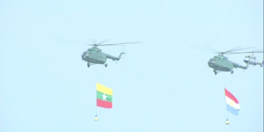 The Senior General urged the Tatmadaw (Air) to continue its active involvement in national defense, nation-building, and development efforts led by the Tatmadaw. Following the Senior General’s speech, Commander-in-Chief (Air) General Tun Aung delivered a speech of thanks, while Chief of Staff (Air) Lt-Gen Zaw Win Myint declared the commissioning of the new aircrafts and helicopters.