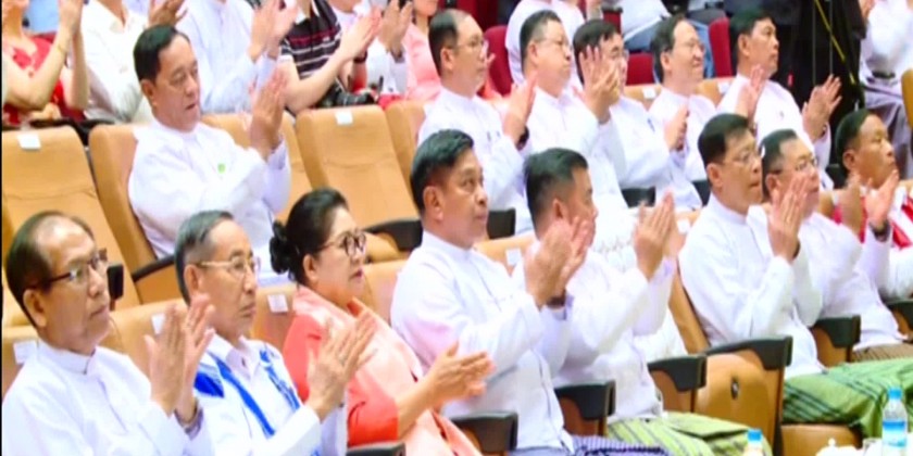 The Ceremony began with a song titled “Sein Yatu Ahla Mahn Htar Wara Myanma Athan” and screening the 77th Anniversary of the Myanma Radio and Television (MRTV) documentary. In his address, the Prime Minister highlighted history and efforts of the MRTV for the public. He also praised the teamwork of the MRTV officials and staff. The State Administration Council has been serving the state duties for 2 years now according to the 2008 constitution. The Senior General also stressed the efforts of the State Administration Council for peace in the country.