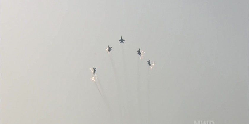 Then, the Senior General inspected the parade columns, while those present taking the salute of the Flag of the Republic of the Union of Myanmar, the central military band played national Anthem. They also saluted the fallen Tatmadawmen, and Tatmadawmen (Army, Navy and Air) from the parade columns and MPF members recited the Four Oaths in chorus.