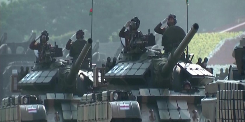 Tatmadaw men and police members from the military columns sang the marching songs in chorus with patriotic and nationalistic spirit and then took positions at the Parade Ground. On arrival at the parade ground, the Senior General took the salute from the Tatmadawmen from the military columns and members of Myanmar Police Force.
