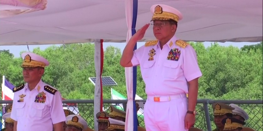 The Senior General then delivered a guidance address to officers and sailors of the Tatmadaw (Navy). Afterwards, the Senior General, and party departed from No. (3) Naval Jetty to the Ayeyawady Naval Base Headquarters aboard the naval vessel Yadanabon. During the journey, officers and sailors aboard Tatmadaw Navy vessels stationed along the river rendered salutes to the Senior General.