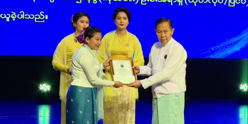 Then, the Vice Senior General provided 7.5 million kyat for the MRTV 79th anniversary celebration to the Union Minister who in turn presented the commemorative logo. This was followed by presenting of awards to the outstanding staff members who excelled in broadcasting extended channels as well as the winners of the ABU Diversity and Inclusion Media Award and CGTN Myanmar Article Contest.