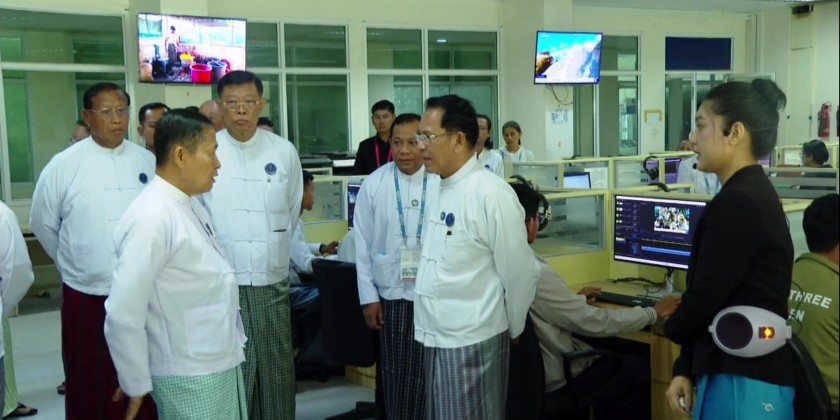 After the ceremony, the Vice Senior General and party took a tour of MRTV, observing the news studios, transmission rooms, Convergence News Rooms, production of MSME Promos in Myanmar and ethnic languages, trial run of AI production and audio recording of a radio drama.