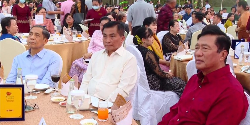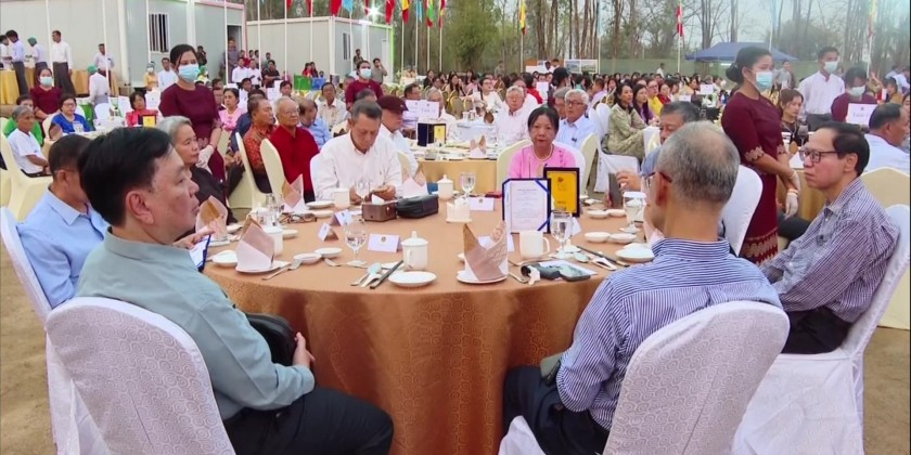 The celebrations included an alms-offering ceremony to the members of Sangha at 6:00 AM, an award presenting ceremony for outstanding staff at 10:00 AM, and a commemorative dinner with dance competitions at 6:00 PM. First, Union Minister U Than Swe, along with Ministry of Foreign Affairs staff and their families, led the alms-offering ceremony to five invited monks, offering them with alms and offertories.
