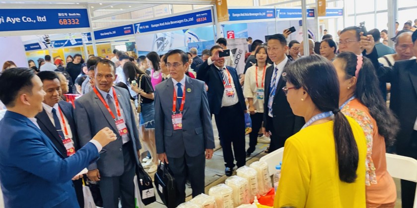 The Economic Ministers from Region and State Governments and delegation members, who is currently in Kunming to attend the GMS Forum, visited the Myanmar Pavilion and observed the booths which are on display.