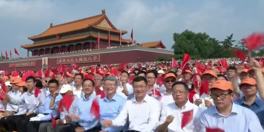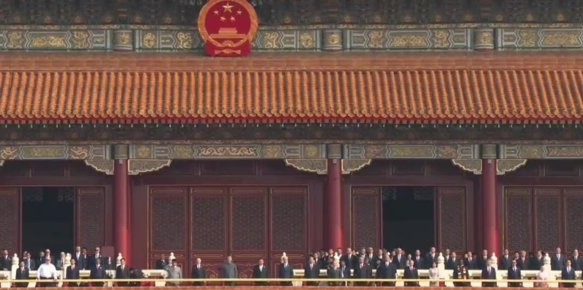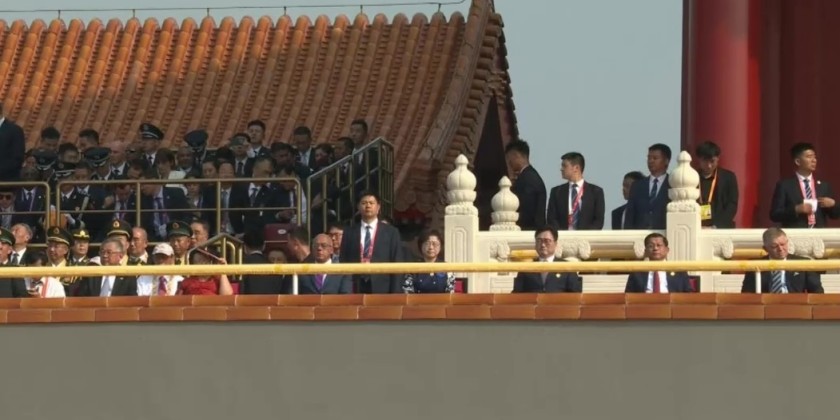 The leaders then proceeded to the Tiananmen Rostrum to view the military parade.