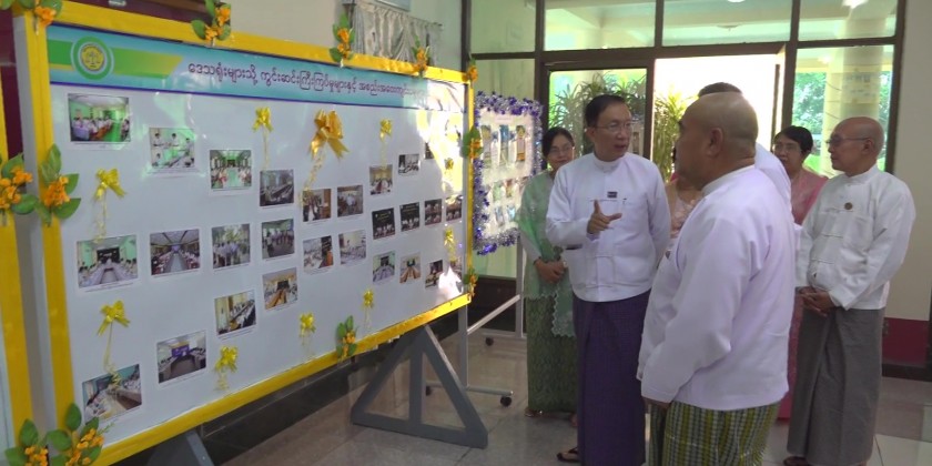 Afterward, the invited guests and officials looked round the photo and poster exhibition displayed in commemorating the Anniversary. Then, the Union Auditor General, officials from the head office and the chair of Myanmar Certified Public Accounts Association awarded the prizes and certificate of honor to the prize winners and the prize of the most time blood donor.