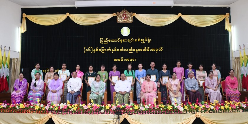 Next, the documentary Video Clip commemorating the Anniversary of the Office of Auditor General of the Union was screened. Next, the Union Auditor General, Union Minister for Investment and Foreign Economic Relations, deputy auditor general and permanent secretary awarded the prizes and certificate of honor. Then, the video on year-round activities with the song of office and the song of advance school was shown.