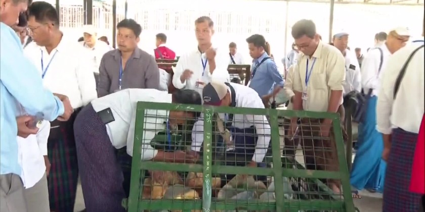 On this day, a total of 750 jade lots, from lot number 2560 to 3309, were put up for sale to domestic traders through an open tender system. According to an announcement, 735 of these lots were successfully sold.In the afternoon, Patron of the Gems Emporium Central Committee Union Minister for Natural Resources and Environmental Conservation U Khin Maung Yi, inspected examing price proposals after opening the tender boxes for sales of jade lots from group (c)at the Mani Yadanar Jade Hall, and provided necessary instructions to the responsible officials.