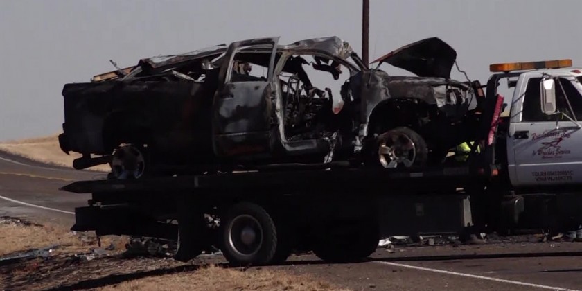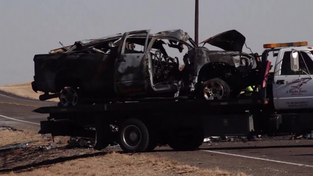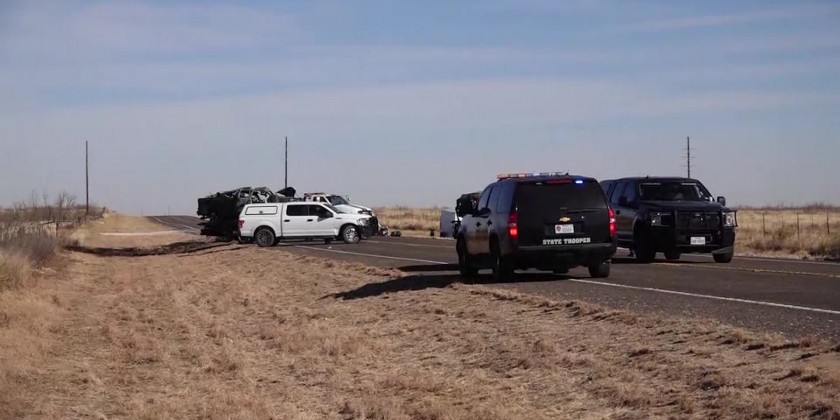 Andrews County, about 30 miles east of the New Mexico state line and crashed into a van carrying members of the University of the Southwest men's and women's golf teams. Two students were taken in critical condition by helicopter to a hospital in Lubbock. The National Transportation Safety Board will send a 12-member "go team" to the crash site, including experts in human performance, vehicle and motor carrier factors and accident reconstruction.