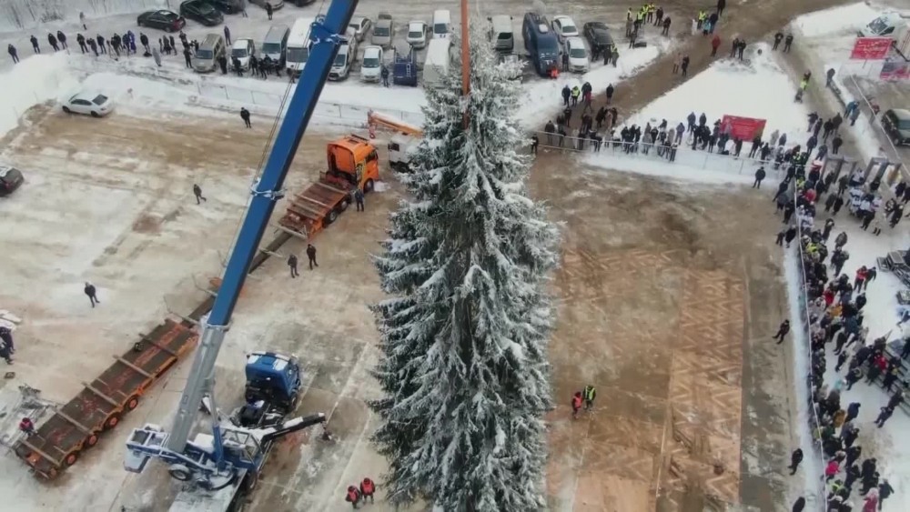 in the Moscow region, a 90-year-old spruce has been selected to be Russia's main Christmas tree. Each year, a tree is selected among dozens of spruces to decorate Sobornaya Square in the Kremlin, in Russia's capital. the spruce has a height of 28 metres and stem diameter of 56 centimetres.