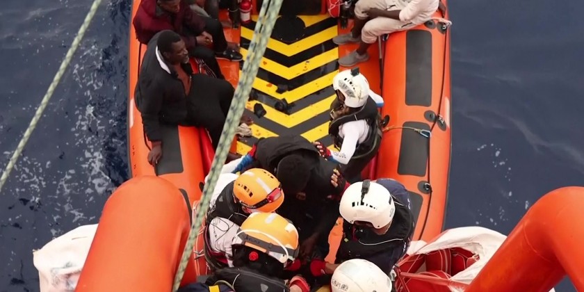 Some of them had suffered fuel burns and one was transferred onto the Ocean Viking with a stretcher due to an orthopaedic injury. The charity’s rescue ship, The Ocean Viking, is carrying the migrants to the port of Salerno in Italy.