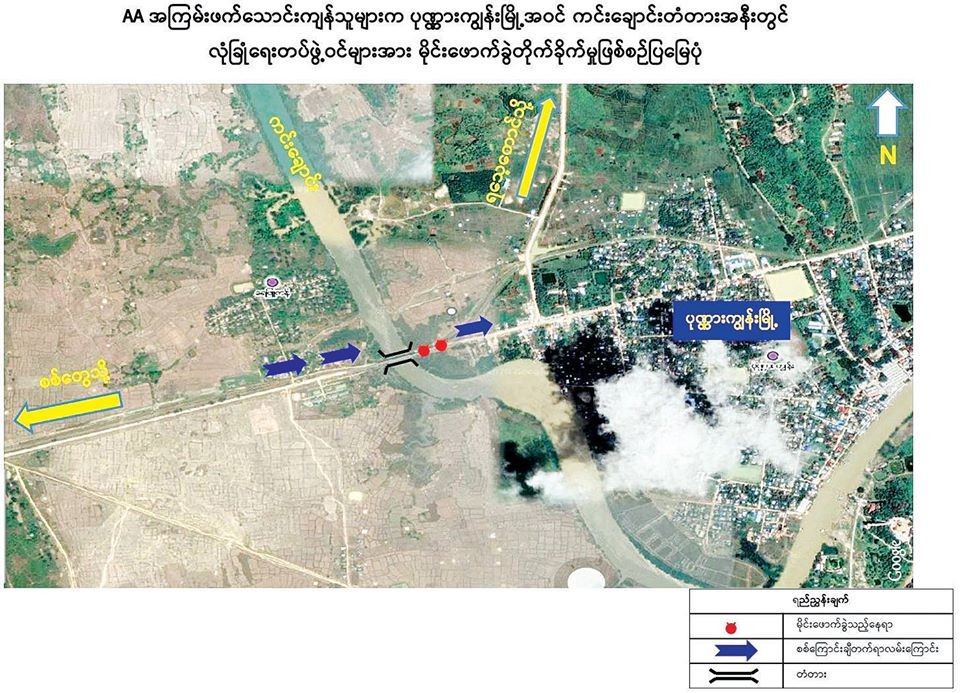 In the early morning on Tuesday, AA group detonated two remote control mines while the members of security force who are patrolling for Sittwe-PonnaKyun road section, arrived near KinChaung Bridge at the entrance of PonnaKyun.