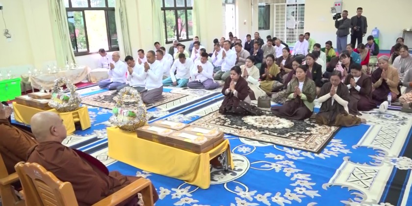 Afterwards, the guests, led by the State Chief Minister, received the Five Precepts from the Presiding Sayadaw of the Taunggyi Sunlon Gu Kammatthana Monastery, and listened reverently to the Paritta Suttas.