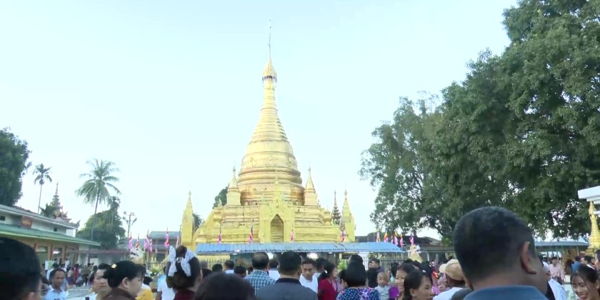 On this Thadingyut Full Moon Day (the Abhidhamma Day), as people freely and happily relaxed and performed meritorious deeds, State Chief Minister U Hket Htein Nan and his wife, the State Chief Justice, members of the State Government and their wives, and responsible officials first visited the ancient, historic Lawka Man Aung Su Taung Pyae Pagoda in the Thi-tar Ward of Myitkyina and the ancient, historic An Taw Shin Pagoda in the Yan Gyi Aung Ward. Together with the public who had come to worship and perform meritorious deeds, they lit and offered 1,000 oil lamps, circumambulated the pagodas clockwise, and observed and supported the Satuditha offerings of rice congee provided by the Township General Administration Department staff.
