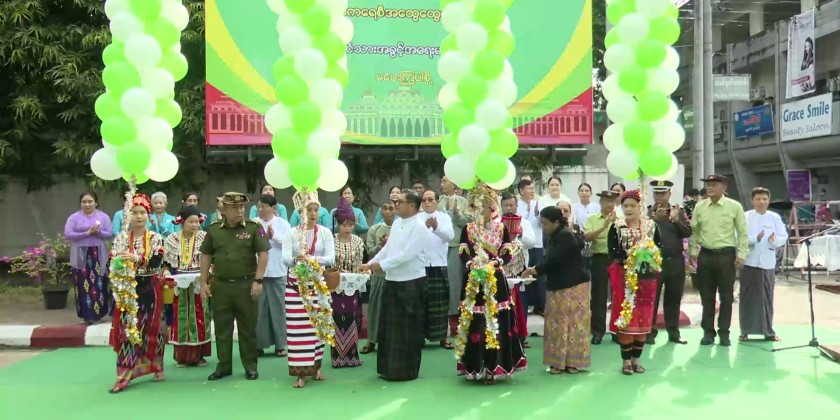 Furthermore, the State Chief Minister and officials proceeded to the Thadingyut charity bazaar being held at the North Command Headquarters to commemorate the Full Moon Day of Thadingyut (Abhidhamma Day). Together with the Commander, Deputy Commander, and senior military officers, they toured the charity bazaar. They observed and supported the Satuditha-food stalls offering traditional foods, prepared and hosted by regiments/units under the supervision of the Command Headquarters, presented incentive funds, and watched song performances.