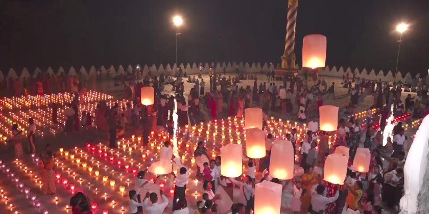 Afterwards, the Chief Minister and his wife led the lighting and offering of oil lamps, with department staff and local people joyfully participating in the oil lamp lighting and offering. Subsequently, the Chief Minister and his wife, along with members of the state government, together with department staff and local people, joyfully released and hot air balloons on the pagoda platform.