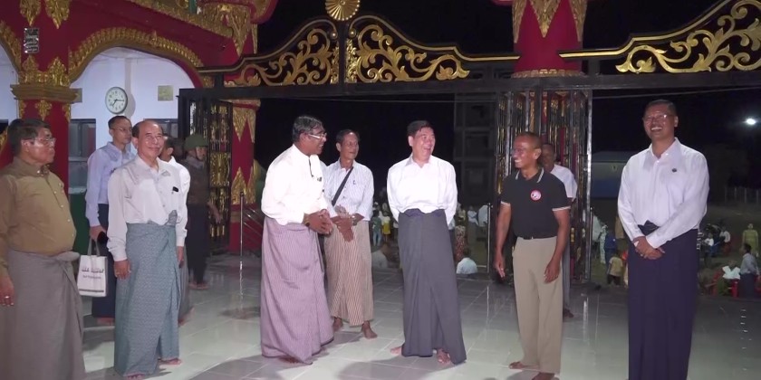 Afterwards, the Chief Minister and officials toured the prepared oil lamp on the platform of Lawkananda Pagoda, and cordially greeted the departmental officials and local residents who attended the lighting festival.
