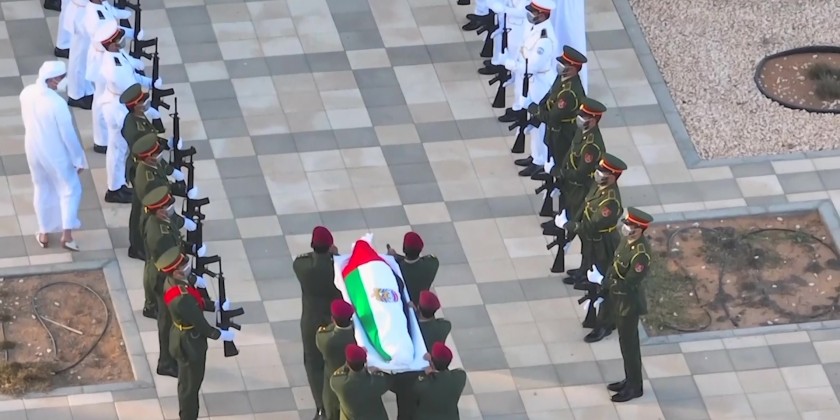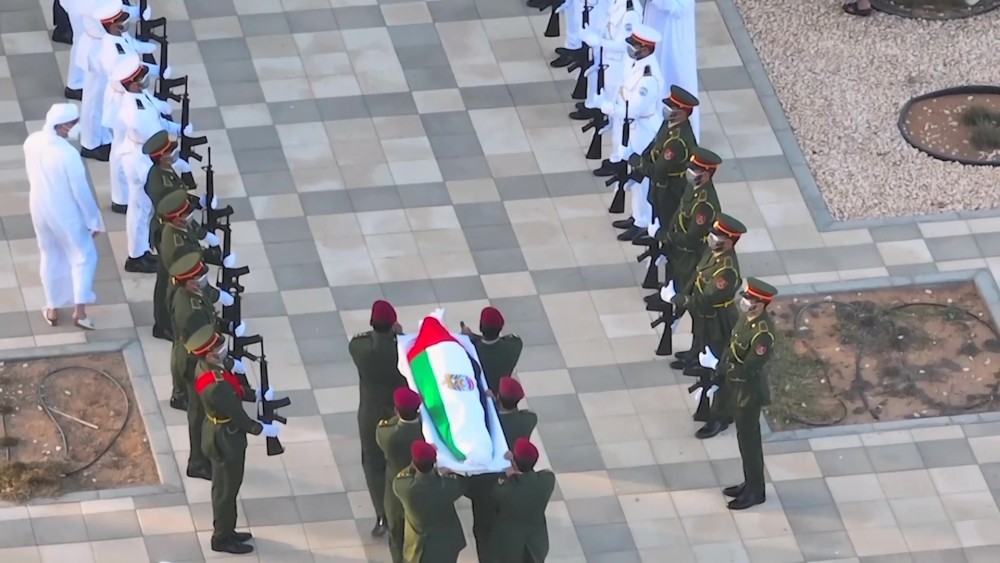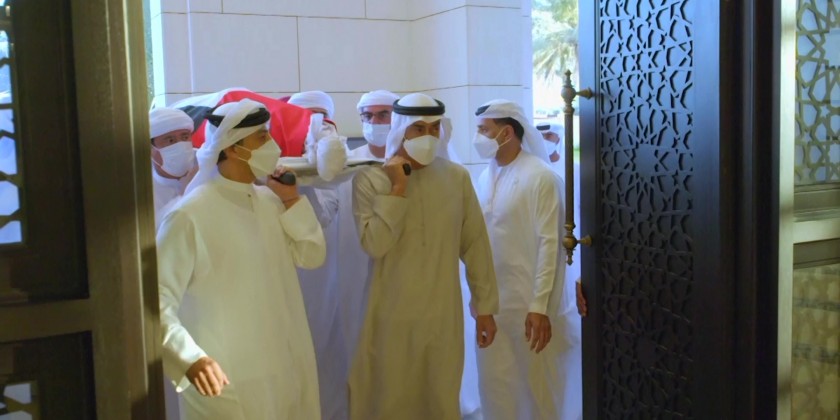 Inside the mosque a service was led by Crown Prince before being continued at the burial site. The UAE's Ministry of Presidential Affairs had previously announced a 40-day period of mourning and a three-day suspension of work in all ministries and the private sector beginning Friday, including flags to be flown at half-staff.