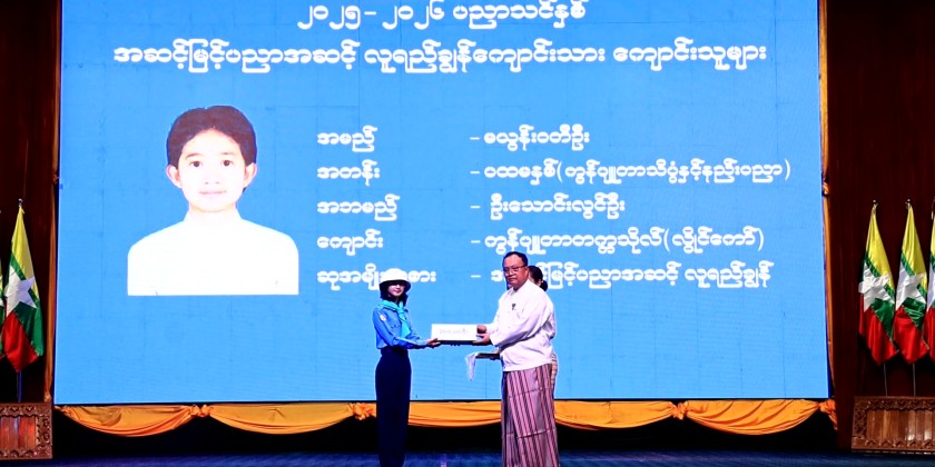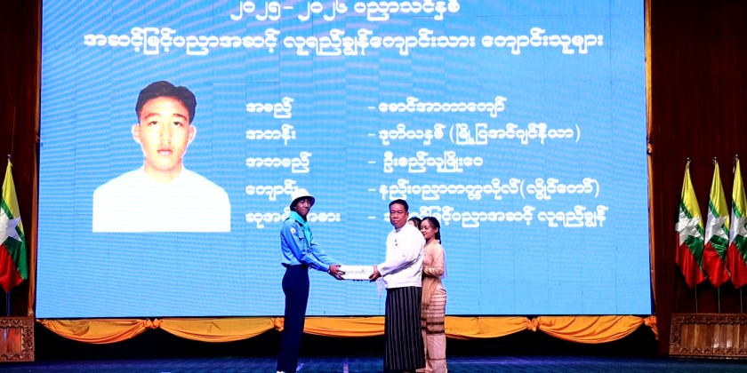 Kayah State held an awards ceremony on Saturday to recognize outstanding students from primary and higher education for the 2025–2026 academic year in Loikaw. The ceremony opened with a performance by a student from Loikaw Education Degree College, to the song “Luchon Lu Kaung” to honor the awardees.
