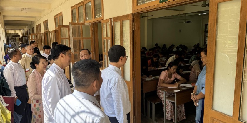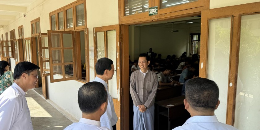 On 26th October, Deputy Minister for Education Dr. Zaw Myint accompanied by concerned officials inspected the students taking for distance education arts subjects examinations at the Mawlamyine University and instructed the officials for systematic supervision during exam period.