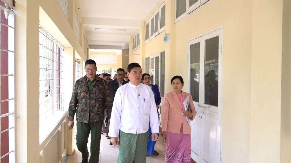 First, the Chief Minister and party inspected the classrooms and teaching process. There, they cordially greeted the students and expressed words of encouragement. Then, the Chief Minister and party inspected the completion of classrooms renovation, the entrance of graduation hall and main building of the university which were damaged by cyclone MOCHA and coordinated requirements.