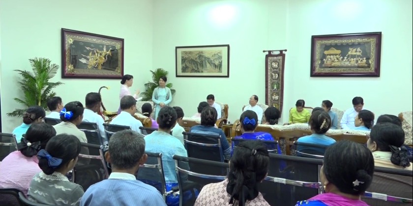 The Union Minister also coordinated requirements upon reports presented by the faculty members and oversaw the learning condition of the students. Then, the Union Minister proceeded to Yangon University of Foreign Languages, met with the rector, pro rector and faculty memebers.